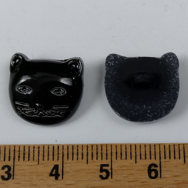 Plastic knap - Sort Kattehoved - 15 x 16 mm